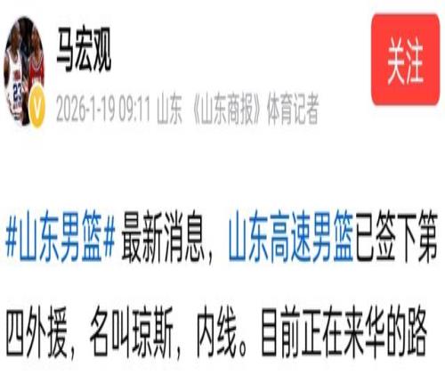 2米12、内线大闸!山东官宣第4外援:第1战,有望大战浙江广厦!