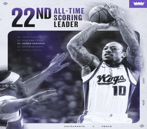 这场比赛是德玛尔-德罗赞的里程碑之夜,他的历史总得分超过了加内特升至第22位,第三节德罗赞命中他标志的中投后26072分超过了加内特的26071分,德罗赞首节4中4,半场6中4拿15分,三节打完已经拿到22分,全场比赛40分钟,16中7+罚球13中12拿到27分6篮板5助攻1抢断。