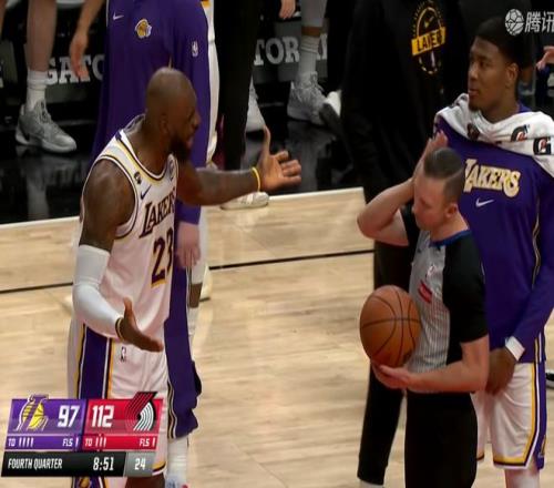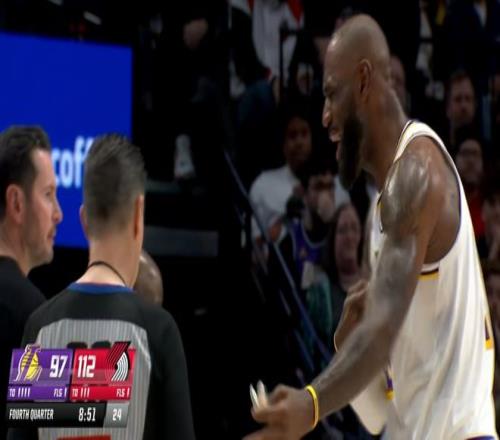 湖人对开拓者的比赛在第4节进行到8分51秒的时候,出现了重大争议时刻,当时开拓者112:97领先湖人15分,而克林根半空当中接到队友传球,刚要完成空中接力。此时詹姆斯远远的冲过来,一巴掌扇在了克林根的手上。