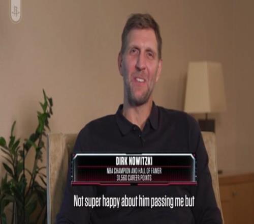 本场比赛,火箭队球星凯文-杜兰特迎来里程碑,他超越了诺维茨基升至历史总得分榜第六位。赛后,火箭队官方社媒晒出了诺维茨基对于杜兰特的祝贺视频。诺维茨基在视频中笑着说道:“对于他超过我,我有点不高兴。不过说真的,在我看来,他是篮球史上最纯粹、最流畅的得分手之一。他基本上是个七尺长人,虽然他自己不承认,但我觉得他是个七尺长人,打法却像个得分后卫。他的运球突破、运球后投篮、失去平衡的投篮,样样精通。”