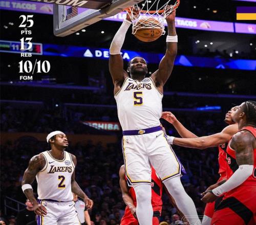 RJ巴雷特、珀尔特尔、沃尔特、赫伯恩缺战,猛龙队的首发五虎是布兰登英格拉姆、斯科蒂巴恩斯、奎克利、阿巴基与博伊尔斯。战绩高居东部第4的猛龙,本赛季实现了崛起,实力不容小觑。2连败的湖人队,则渴望触底反弹。两大劲旅,在此役上演了激烈厮杀。
