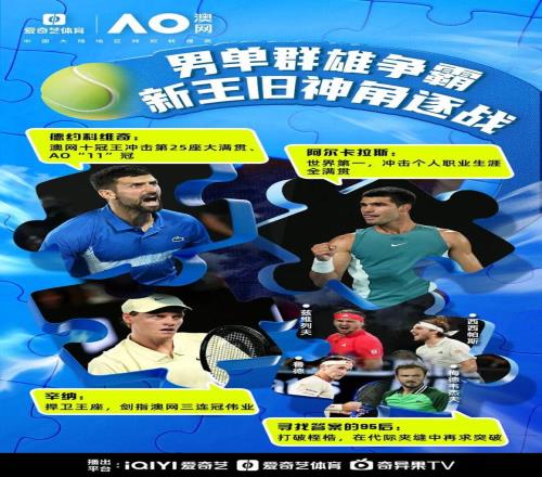 北京时间1月18日,新赛季首项网球大满贯——2026澳大利亚网球公开赛即将火热来袭,锁定爱奇艺体育,看2026澳网全场地直播!