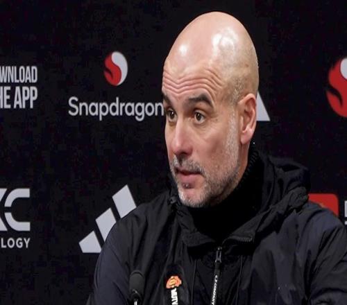 英超第22轮,曼城客场0-2不敌曼联,赛后,曼城主帅瓜迪奥拉出席新闻发布会接受媒体提问。先从整体说起。你如何评...