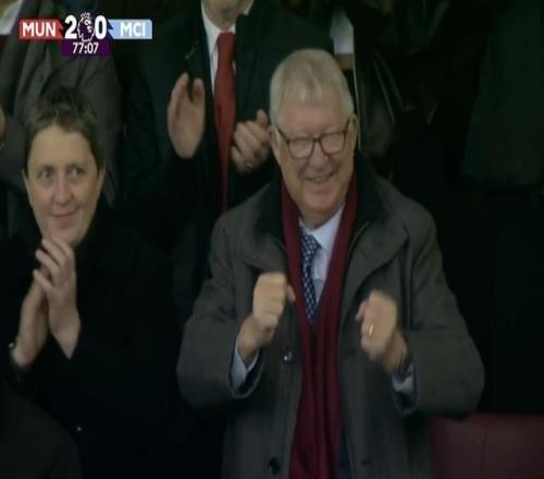 乐坏了,曼联20领先后弗爵爷在看台握拳庆祝